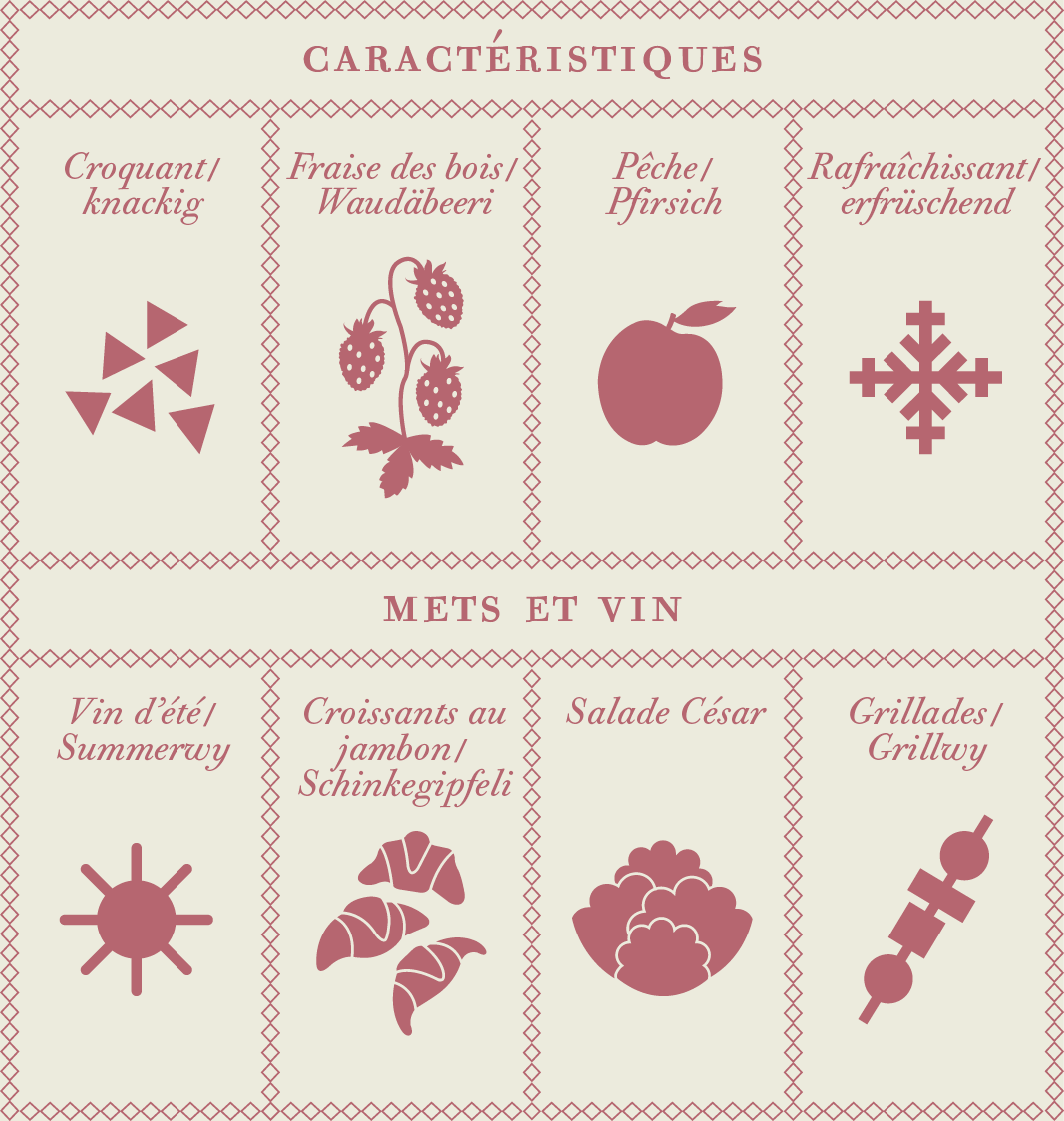 Le Pinot Noir est le cépage rouge traditionnel du Vully. Sur notre domaine il se décline en deux variantes de couleurs : rosé et rouge.